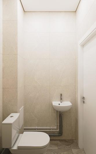 Санузлы отделаны высококачественной бежевой плиткой размером 60×60 см, покрывающей стены целиком. Здесь также предусмотрена современная сантехника европейского качества, включая ванну или душевую кабинку в зависимости от метража пространства.